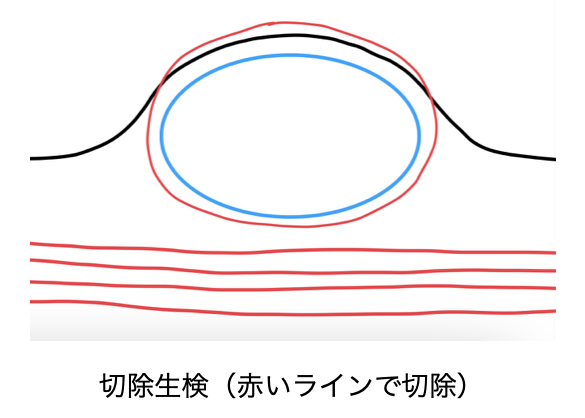 できもの全てを最小限の大きさで切除して病理検査を行います。これはできものが非常に小さい場合や良性の可能性が高い場合に最初から選択する場合があります。
