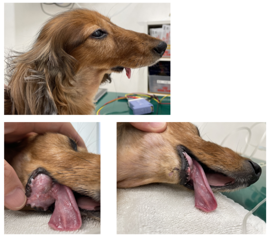 口のできものが認められた場合は、基本的には外科手術による切除が推奨されます。できものの種類や広がり方によって切除範囲も大きく変わります。切除できるのか、麻酔がかけられるのか、どんな手術になるのかを判断するためには様々な検査が必要です。